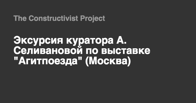 В финальные дни работы выставки куратор Александра Селиванова проведет для вас заключительную обзорную экскурсию по выставке "Агитпоезда". Выставка «Агитпоезда» посвящена одному из самых ранних и необычных явлений в отечественной культуре, порожденных революцией. Агитпоезда олицетворяли ключевую для начала ХХ века идею синтеза техники и искусства, просвещения и пропаганды, разных функций и образов в новое явление – соединение выставки, театра, трибуны, кино и библиотеки на колесах.