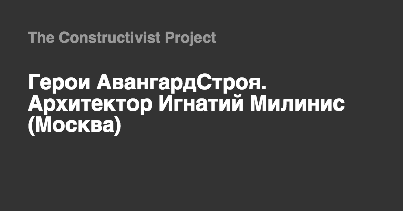 «Герои АвангардСтроя. Архитектор Игнатий Милинис» станет первой монографической выставкой, посвященной творчеству одного из самых значительных русских архитекторов-авангардистов И. Ф. Милиниса (1899–1974).