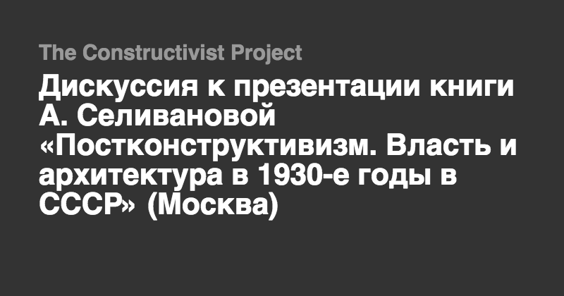 Обо всем этом 12 февраля в Лектории Музея Москвы будут рассуждать и спорить архитекторы, историки архитектуры и искусствоведы в ходе презентации книги «Постконструктивизм. Власть и архитектура в 1930-е годы в СССР» Александры Селивановой, кандидата архитектуры, старшего научного сотрудника Музея Москвы, руководителя Центра авангарда.