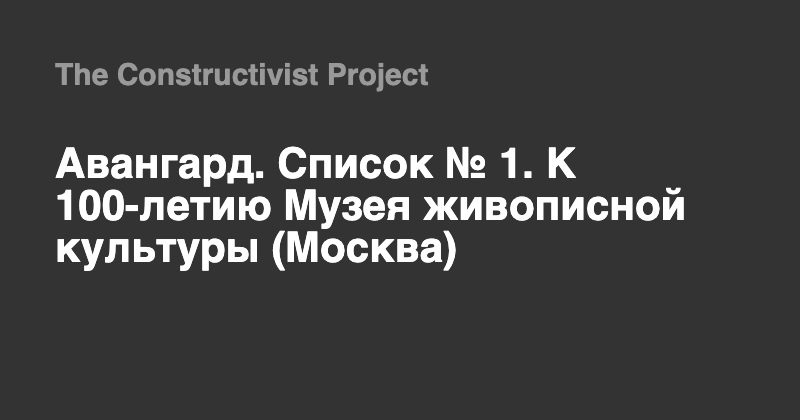 Третьяковская галерея открыла уникальный выставочный проект, приуроченный к 100-летию первого в мире государственного музея современного искусства — московского Музея живописной культуры (МЖК). Когда МЖК уже завершал историю своего существования, известный Музей современного искусства (МоМА) в Нью-Йорке только открывался. Московский МЖК был ключевой структурой беспрецедентного проекта Советской России, развернувшего по стране целую сеть музеев нового типа — музеев живописной культуры, которые были призваны, «сбросив с корабля современности» классические традиции изобразительного искусства, кардинально переформатировать мышление художников и подготовить современного зрителя к восприятию новых художественных форм.