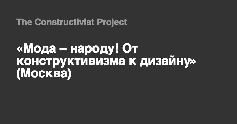 Проект являеся продолжением серии исторических проектов о моде, стартующий вслед за экспозицией, посвящённой известному российскому и советскому модельеру Надежде Ламановой. Экспозиция посвящена конструктивизму и его эпохе в постреволюционной России.
